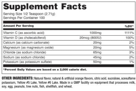 Formulan är även berikad med vitamin D, som ytterligare stödjer immunförsvaret, samt viktiga mineraler som kalcium, magnesium, natrium, kalium och klorid – för att främja vätskebalans och allmänt välbefinnande. Den friska apelsinsmaken gör det enkelt och gott att ta som en del av din dagliga hälsorutin.