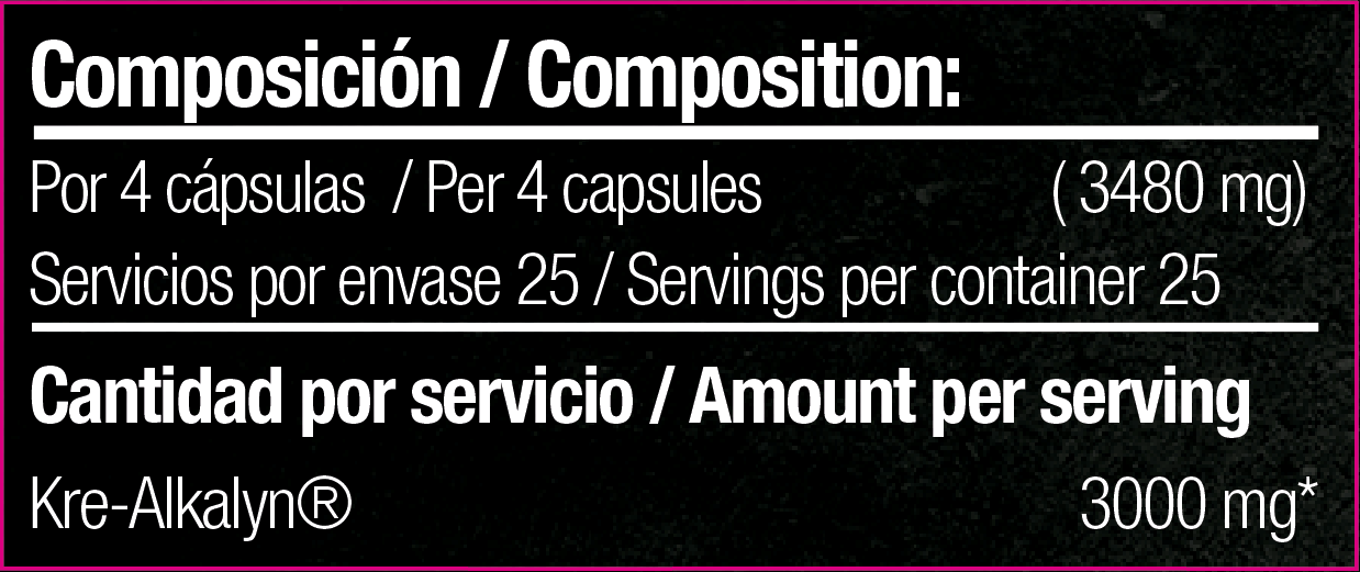 Ta 4 kapslar dagligen – utspritt över dagen – tillsammans med rikligt med vatten. Varje dagsdos ger dig 3000 mg högkvalitativ Kre-Alkalyn kreatin. Perfekt för att ladda upp kroppen inför eller återhämta efter ett brutalt träningspass.