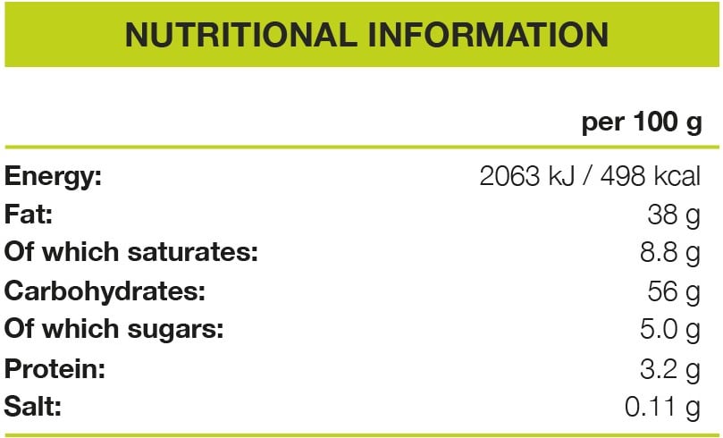 Bred på bröd, rostat bröd eller kex, eller använd som topping på pannkakor och våfflor. Passar även utmärkt i bakverk för att ge extra smak. Förvara svalt och torrt. Rör om före användning om separering uppstår.