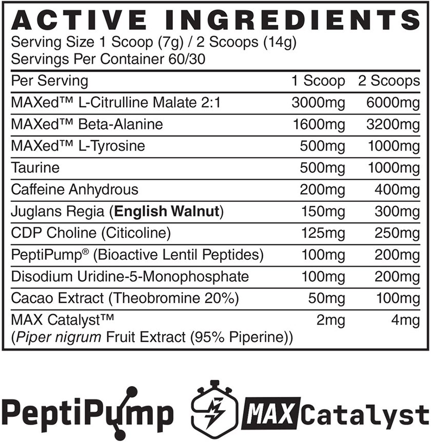 Blanda 1 skopa (7 g) eller 2 skopor (14 g) med 200–250 ml vatten eller valfri dryck. Börja med 1 skopa för att testa toleransen på grund av den höga koffeinnivån. Ta produkten före träning på träningsdagar. Överskrid inte 2 skopor inom 24 timmar