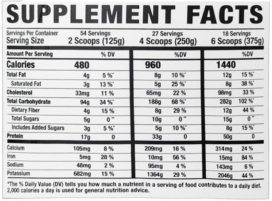 King Mass XXL är utvecklad för att stötta din intensiva träningsrutin fullt ut. Den höga dosen kolhydrater och kalorier fyller på kroppens energireserver, medan proteinet stimulerar muskeltillväxt och påskyndar återhämtning efter hårda träningspass. Kalcium bidrar till normal energimetabolism och kalium spelar en viktig roll för normal muskelfunktion.