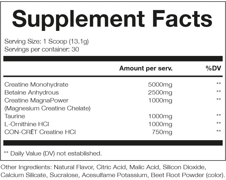 • Innehåller Creatine MagnaPower och CON-CRET Creatine HCl