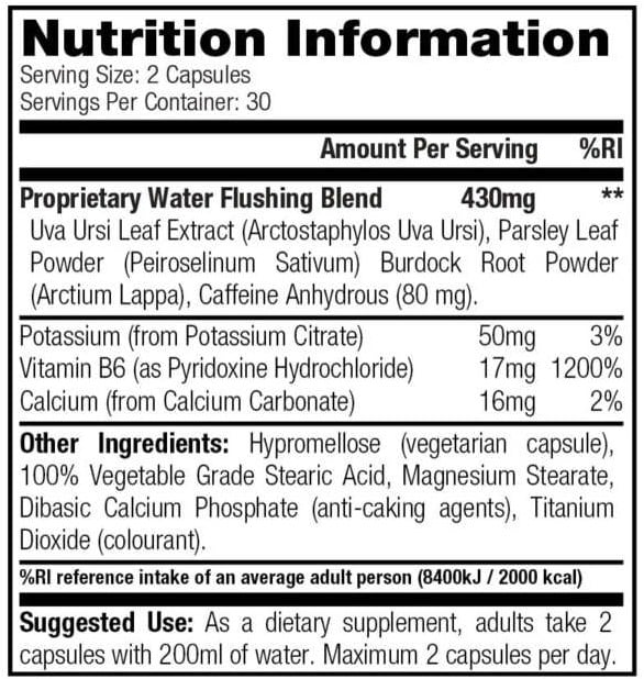 Stacker2 Dexi Flush är ett noggrant utvecklat kosttillskott som är utformat för att stödja en aktiv livsstil och dina hälsomål. Formulan innehåller en särskild blandning av ingredienser för vätskedrivande effekt, inklusive björnbärsbladextrakt (uva ursi), persiljebladspulver och kardborrerot. Varje portion innehåller även 80 mg koffein (anhydrous) samt viktiga näringsämnen som kalium, kalcium och vitamin B6 – vilket bidrar till att reglera hormonell aktivitet. De praktiska kapslarna gör Dexi Flush enkel att använda i din dagliga rutin.