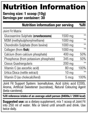 Vitamin C stödjer kroppens naturliga kollagenbildning, vilket är viktigt för broskets normala funktion, medan vitamin D hjälper till att bevara en god benhälsa. Den friska smaken av apelsin och citron gör Joint Fit till ett enkelt och gott tillskott i din dagliga rutin.